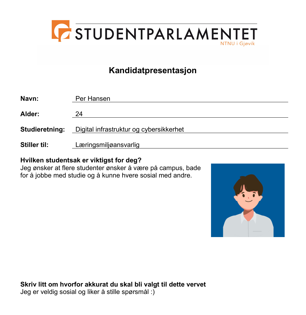 Lurer du på hvordan man fyller ut kandidatskjema? Se eksempelet.